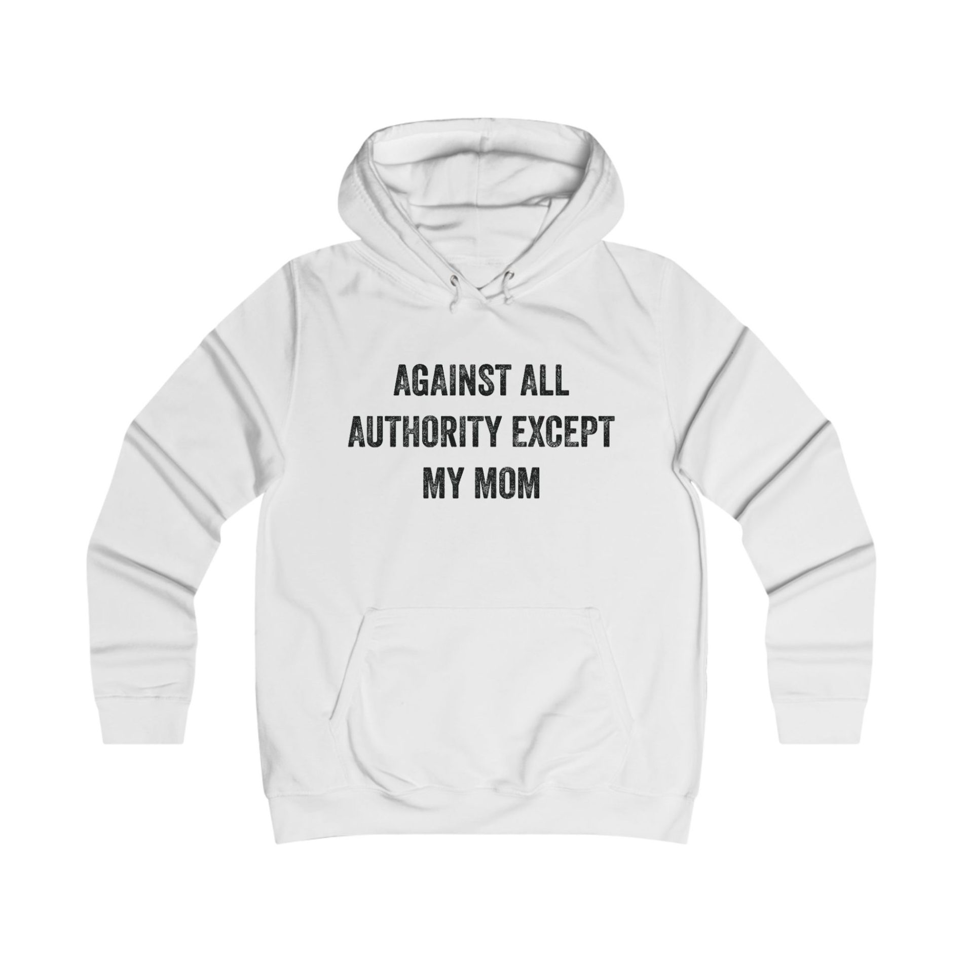 Against All Authority Except My Mom dámská mikina je ironický, drzý statement proti autoritářství a slepé poslušnosti – s jedinou výjimkou, která dává smysl. Tenhle slogan je mix humoru a politického postoje: zpochybňuj moc, nenech se ovládat, odmítni kontrolu. A jo, máma je máma.