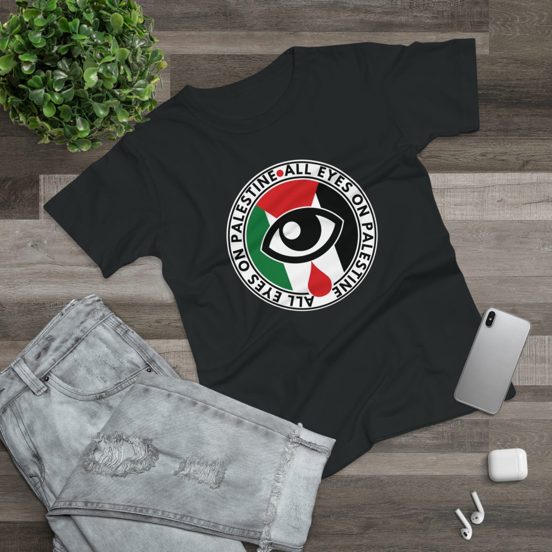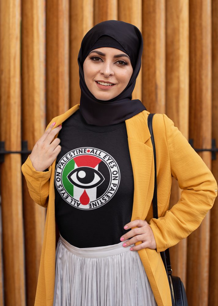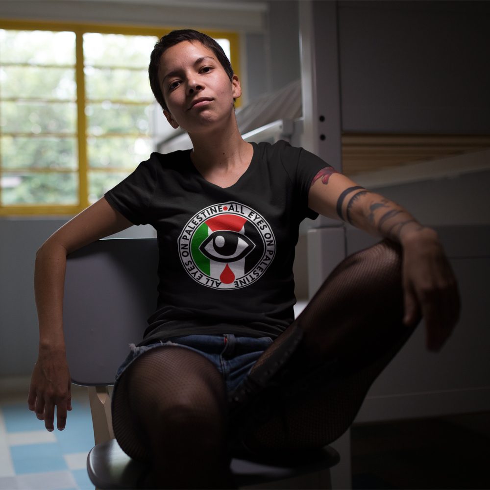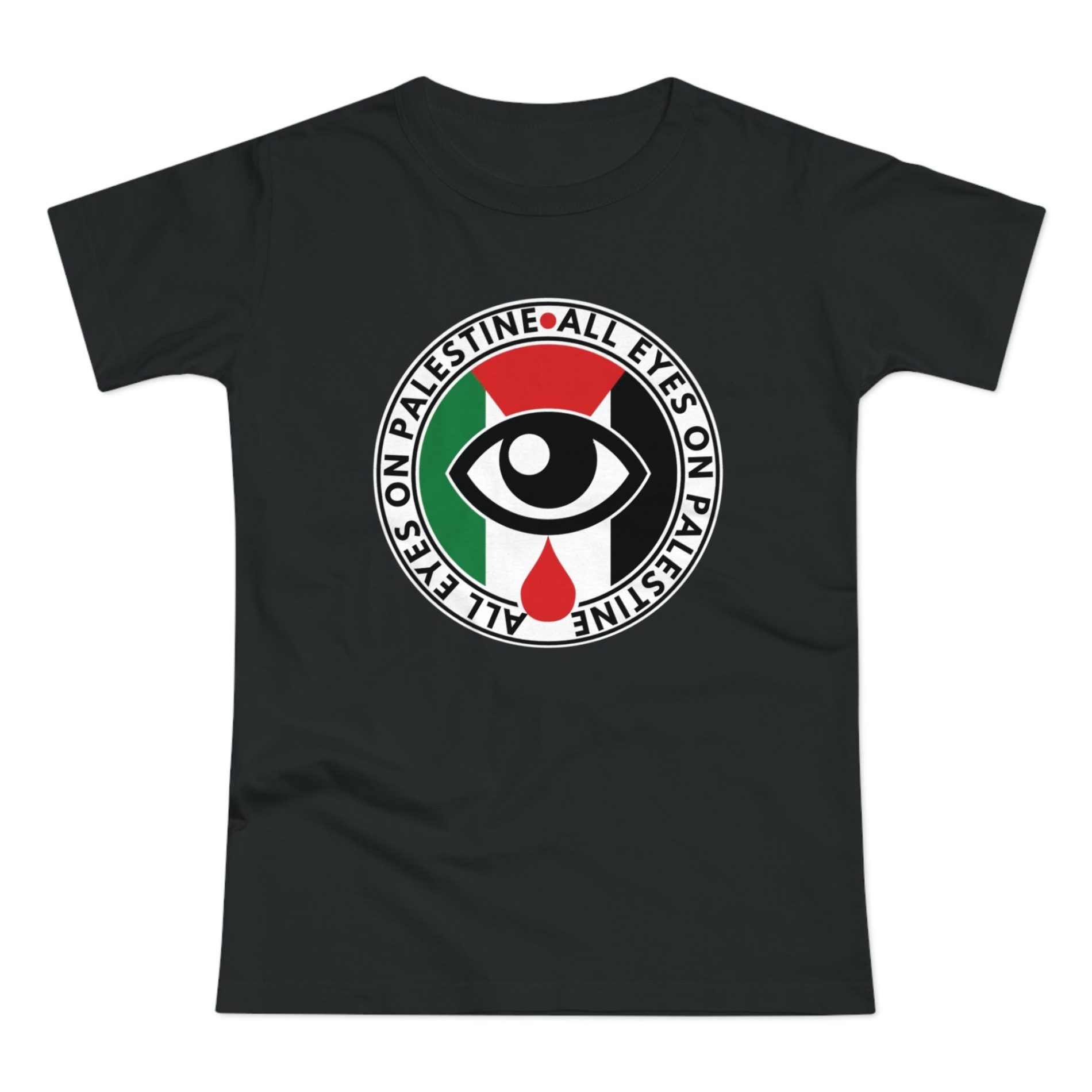All Eyes on Palestine dámské tričko je výraz solidarity s Palestinci a připomínka, že mlčet znamená přihlížet bezpráví. Design vychází z mezinárodní kampaně „All Eyes on Rafah“, která se stala symbolem odporu proti genocidnímu násilí a okupaci.