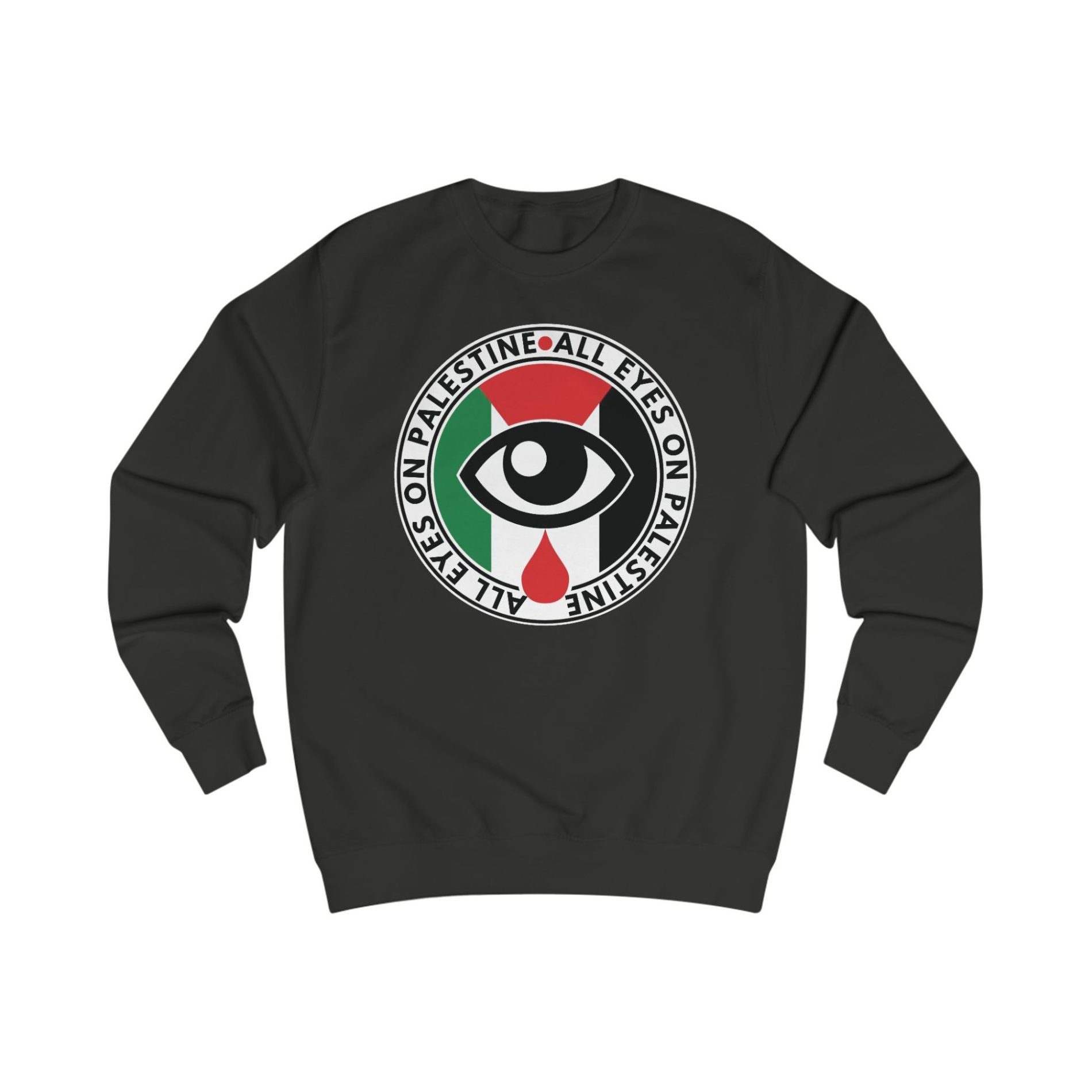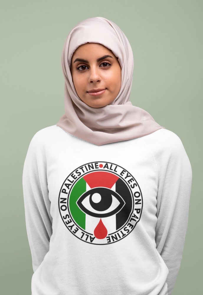 All Eyes on Palestine unisex mikina bez kapuce je jasným symbolem solidarity s Palestinou a odporem proti okupaci a útlaku. Výrazný potisk na hrudi připomíná, že svět nesmí zavírat oči – svoboda a spravedlnost patří Palestině. Díky unisex střihu, pevnému materiálu a pohodlnému provedení je tahle mikina ideální na demonstrace, aktivistické akce i každodenní nošení.