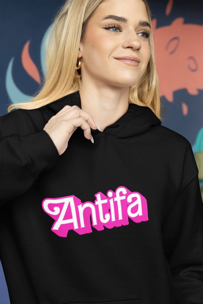Antifa Barbie dámská mikina s kapucí spojuje feminismus, rebelii a antifašismus do jednoho ikonického designu. Nápis Antifa ve slavném Barbie fontu převrací komerční symbol ženskosti na politické prohlášení – protože i růžová může být barvou odporu. Tahle mikina je určená všem, kdo věří v rovnost, svobodu a sílu solidarity. Dámský střih přirozeně sedí, zvýrazňuje postavu a zároveň zůstává pohodlný i při každodenním nošení. Dvojitá látková kapuce, klokanková kapsa a měkký vnitřek zaručují dokonalý komfort a odolnost.