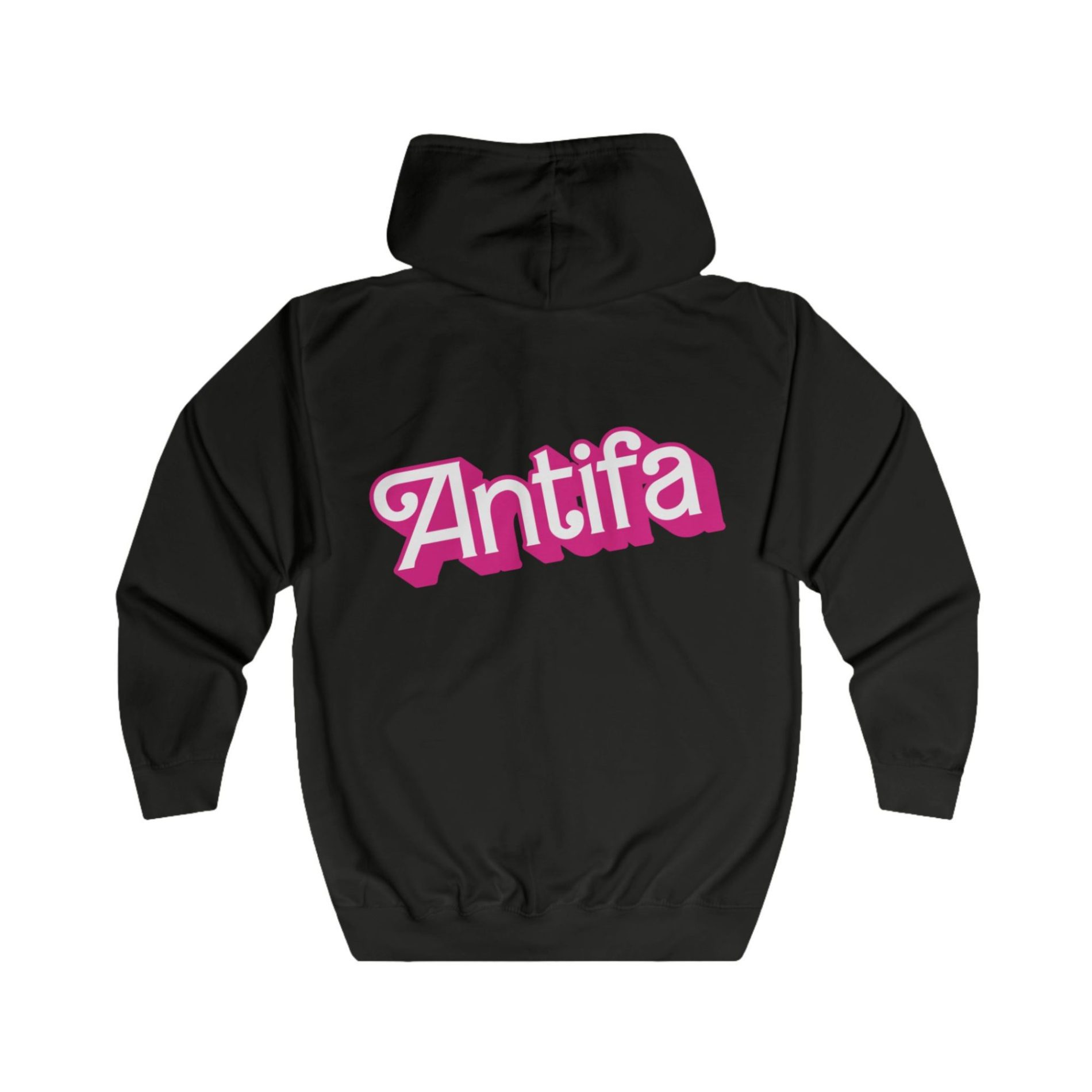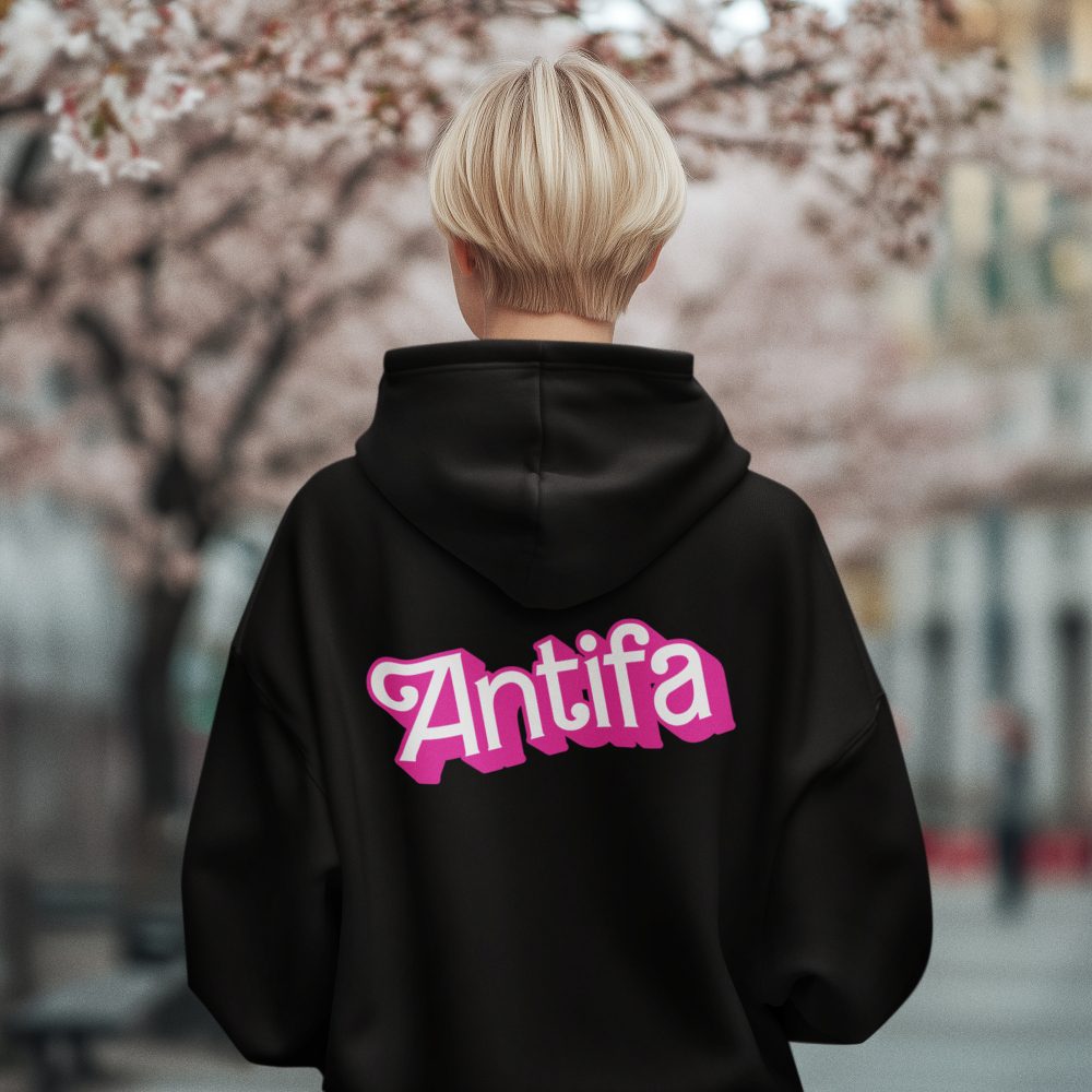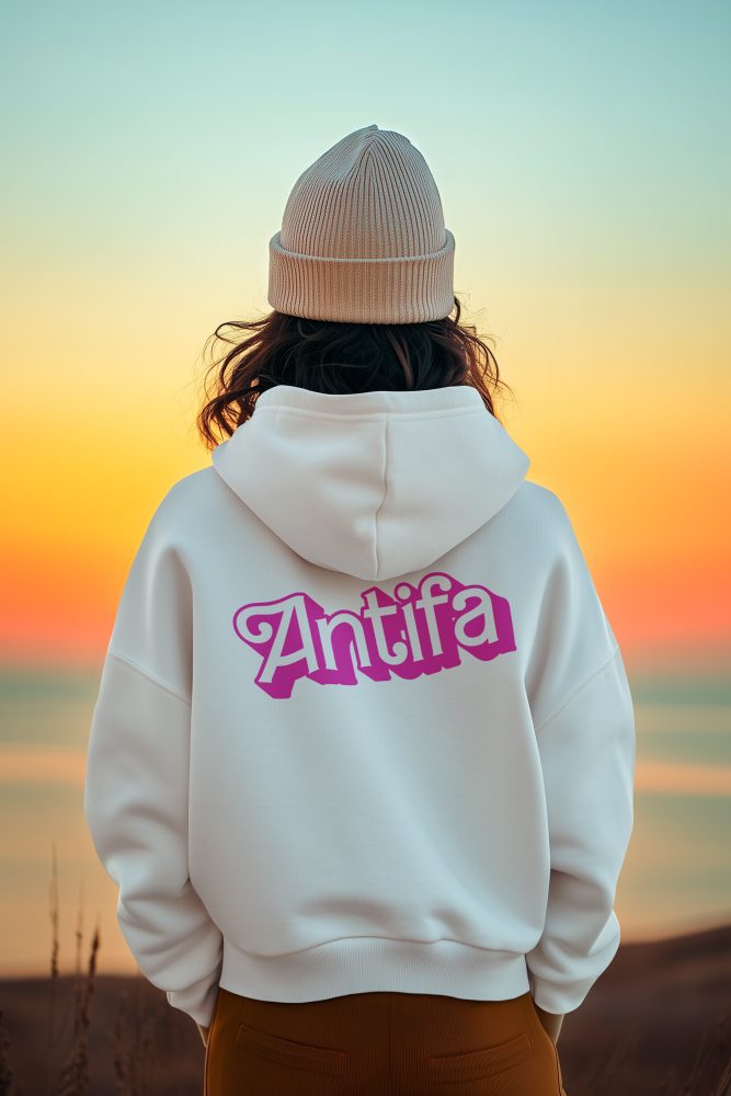 Antifa Barbie unisex mikina s kapucí na zip spojuje streetwear styl, aktivismus a popkulturní nadsázku. Slovo Antifa napsané v ikonickém Barbie fontu dává jasně najevo, že odpor proti fašismu může být hravý, provokativní a zároveň politicky nekompromisní. Díky praktickému zipu, unisex střihu a kapuci se stahovacími šňůrkami je tahle mikina ideální pro každodenní nošení, demonstrace i koncerty.