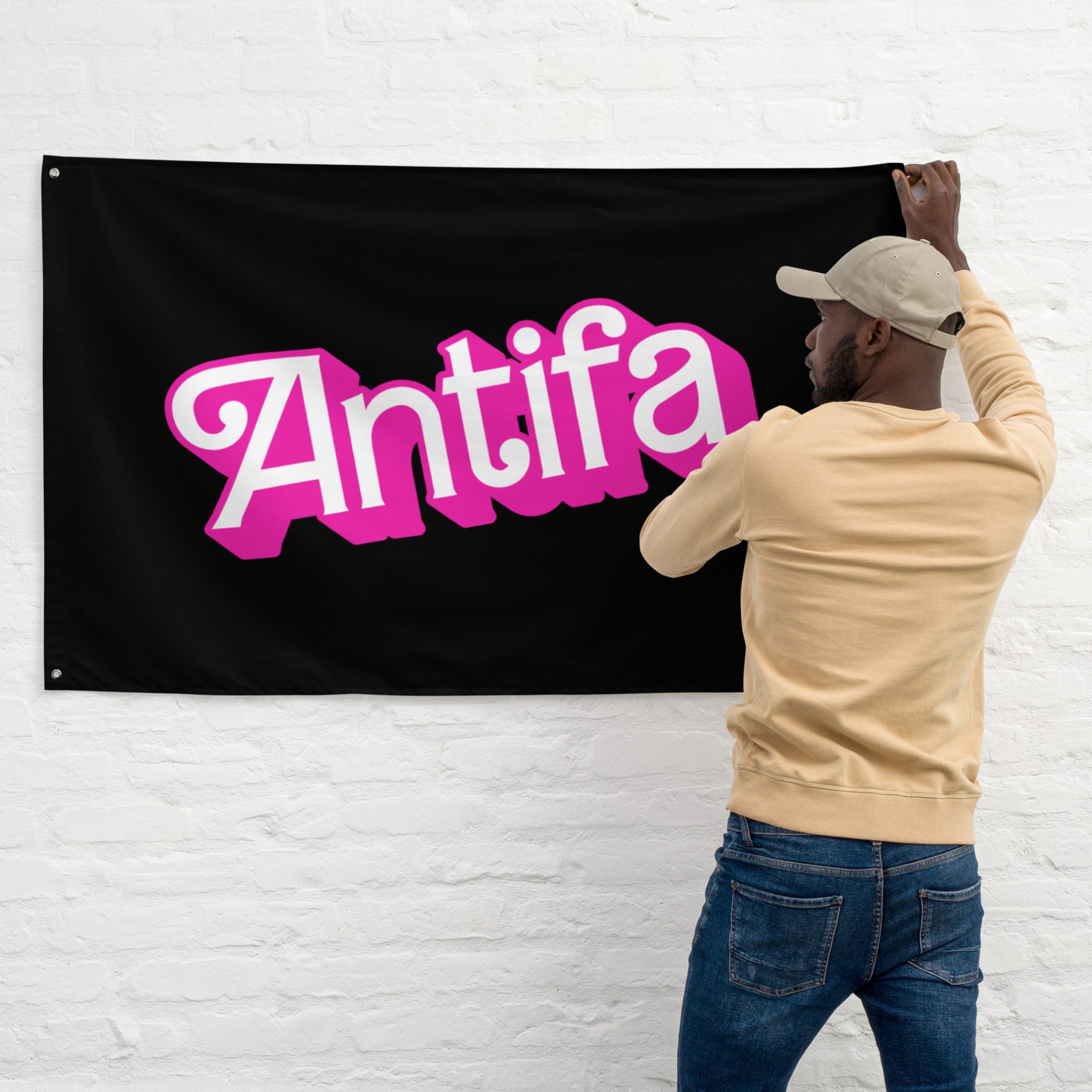Antifa Barbie vlajka je popkulturní ironie s jasným antifašistických postojem. Růžová estetika tu není “nevinná” - je to záměrný kontrast: cute vibe, tvrdá message. Tenhle design si bere zpátky styl i prostor a zároveň odmítá normalizaci fašismu a neonacismu. Vlajka je okamžitě rozpoznatelná, provokativní a přesně proto funguje.