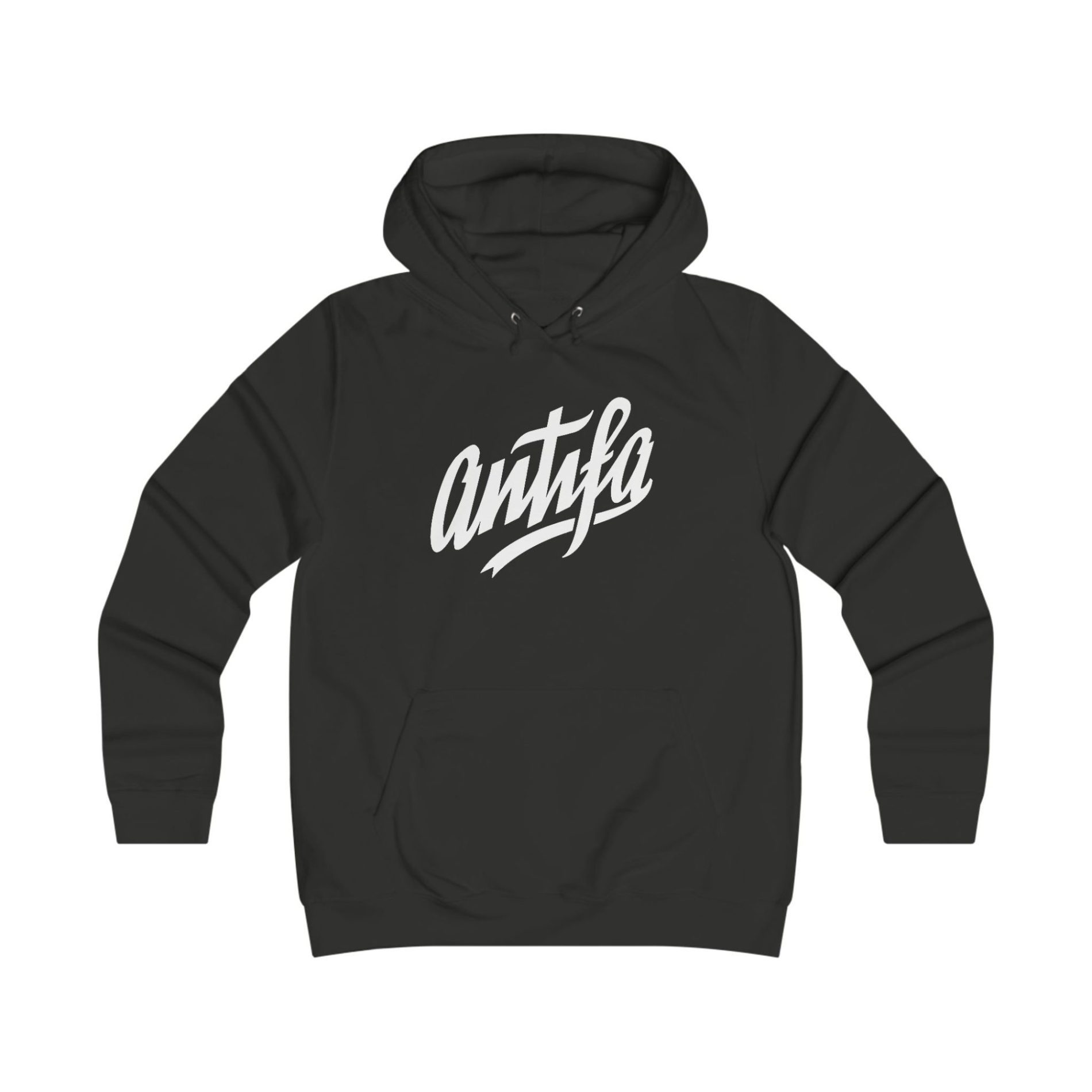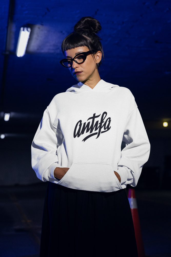 Antifa dámská mikina s kapucí je symbolem odporu proti fašismu, rasismu a nenávisti. Design s ikonickým logem Antifa představuje odvahu, solidaritu a jednotu všech, kteří se staví proti útlaku. Tahle mikina spojuje antifašistický postoj s moderním streetwear stylem – ideální volba pro demonstrace, koncerty i každodenní nošení. Dámský střih přirozeně sedí, zvýrazňuje postavu a přitom zůstává pohodlný. Dvojitá látková kapuce, měkký vnitřek a klokanková kapsa dodávají funkčnost i komfort.
