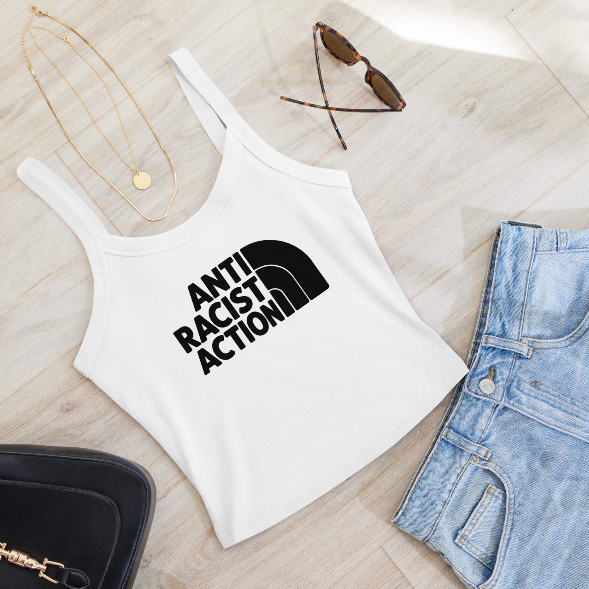 Antiracist Action dámské žebrované tílko je jasný statement proti rasismu. Tenhle motiv staví antirasismus do centra a dává najevo, že solidarita není doplněk, ale postoj. Design má čistý, blokový vzhled inspirovaný outdoor estetikou. Micro-rib žebrování a přiléhavý střih drží moderní siluetu. Motiv tiskneme kvalitním DTF potiskem, takže zůstává ostrý, sytý a dobře čitelný i při pravidelném nošení.