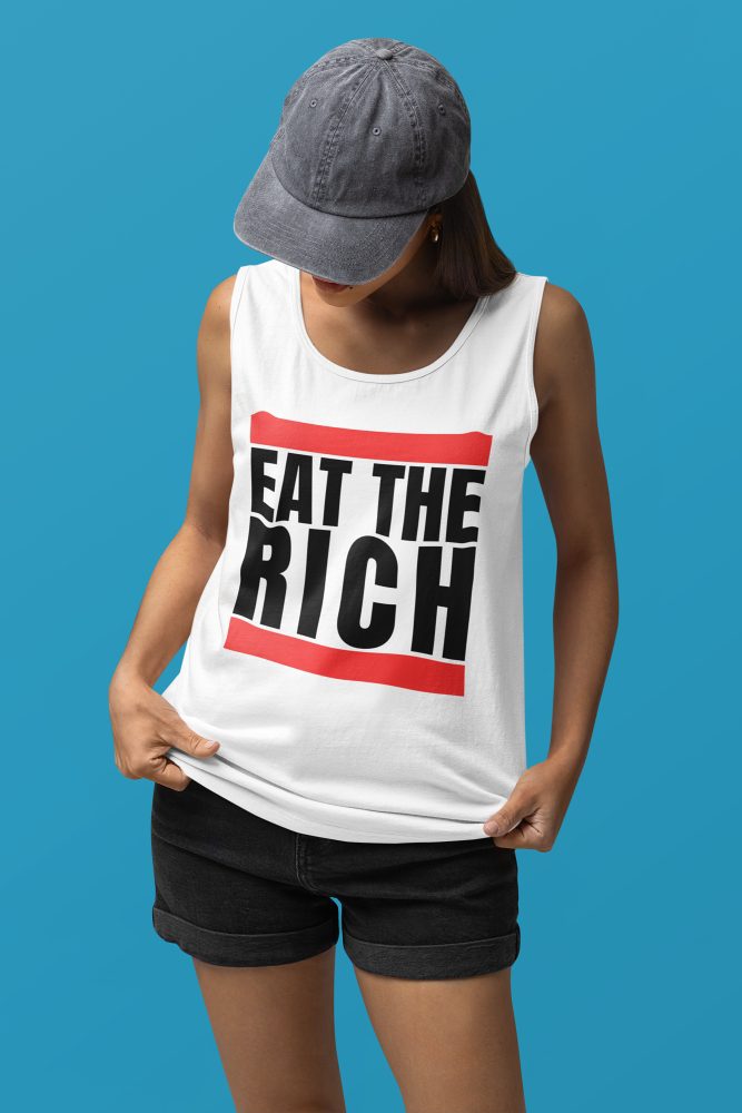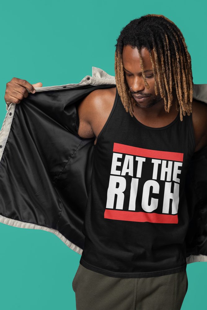 Bohatství několika málo na úkor většiny není náhoda, ale výsledek systému, který podporuje vykořisťování a nerovnost. Unisex tílko Eat the Rich je jasným statementem proti oligarchii, chamtivosti a korporátní moci. Ideální pro každého, kdo se nebojí říct nahlas, že tenhle svět potřebuje zásadní změnu.
