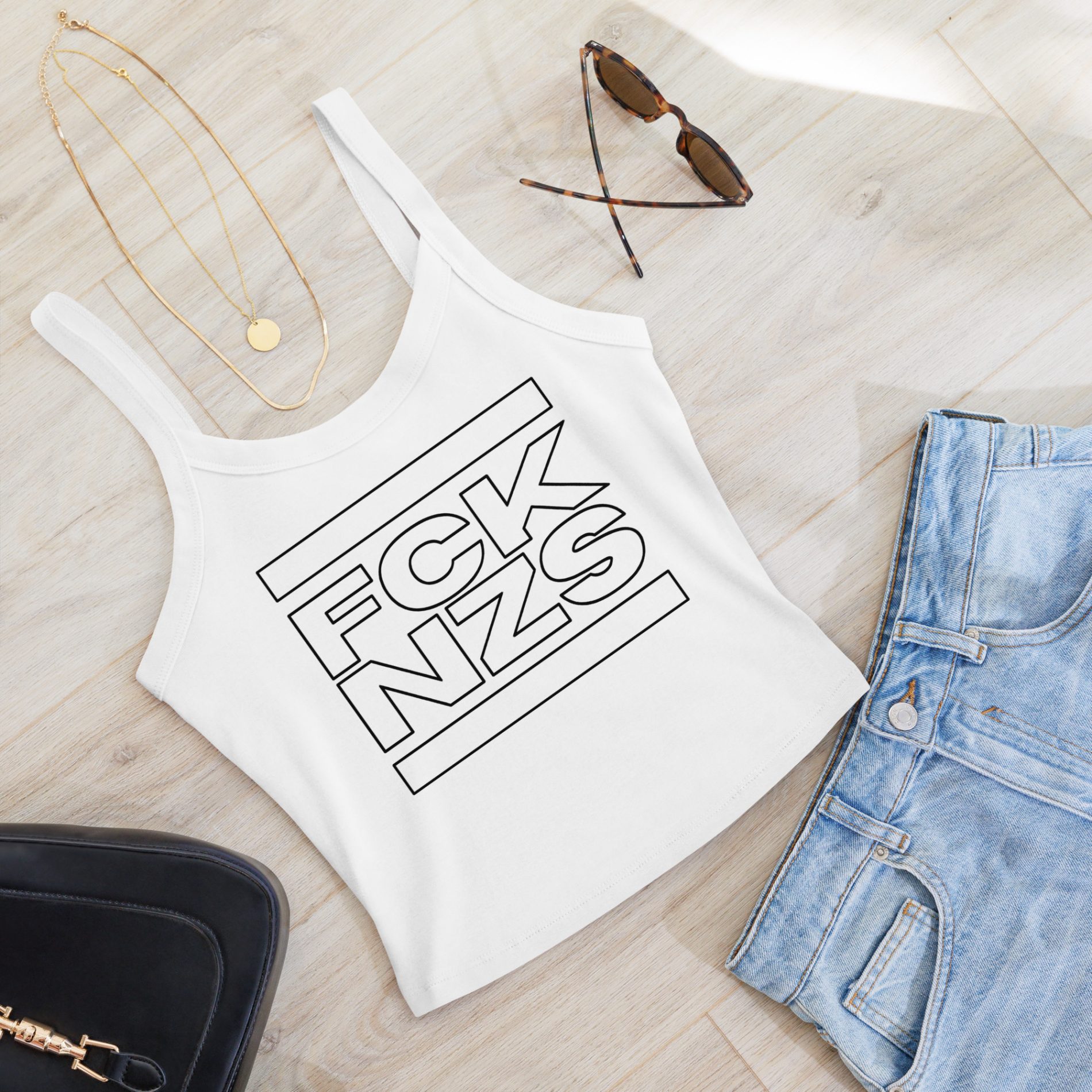 FCK NZS Outline dámské žebrované tílko je čistý, moderní statement proti neonacismu – v minimalistické outline verzi, která je čitelná na první pohled a sedí ke všemu. Motiv tiskneme kvalitním DTF potiskem, takže linky zůstanou ostré a výrazné Žebrovaný micro-rib materiál sedí blízko těla, drží tvar a vypadá skvěle samostatně i ve vrstvení pod košili nebo mikinu.