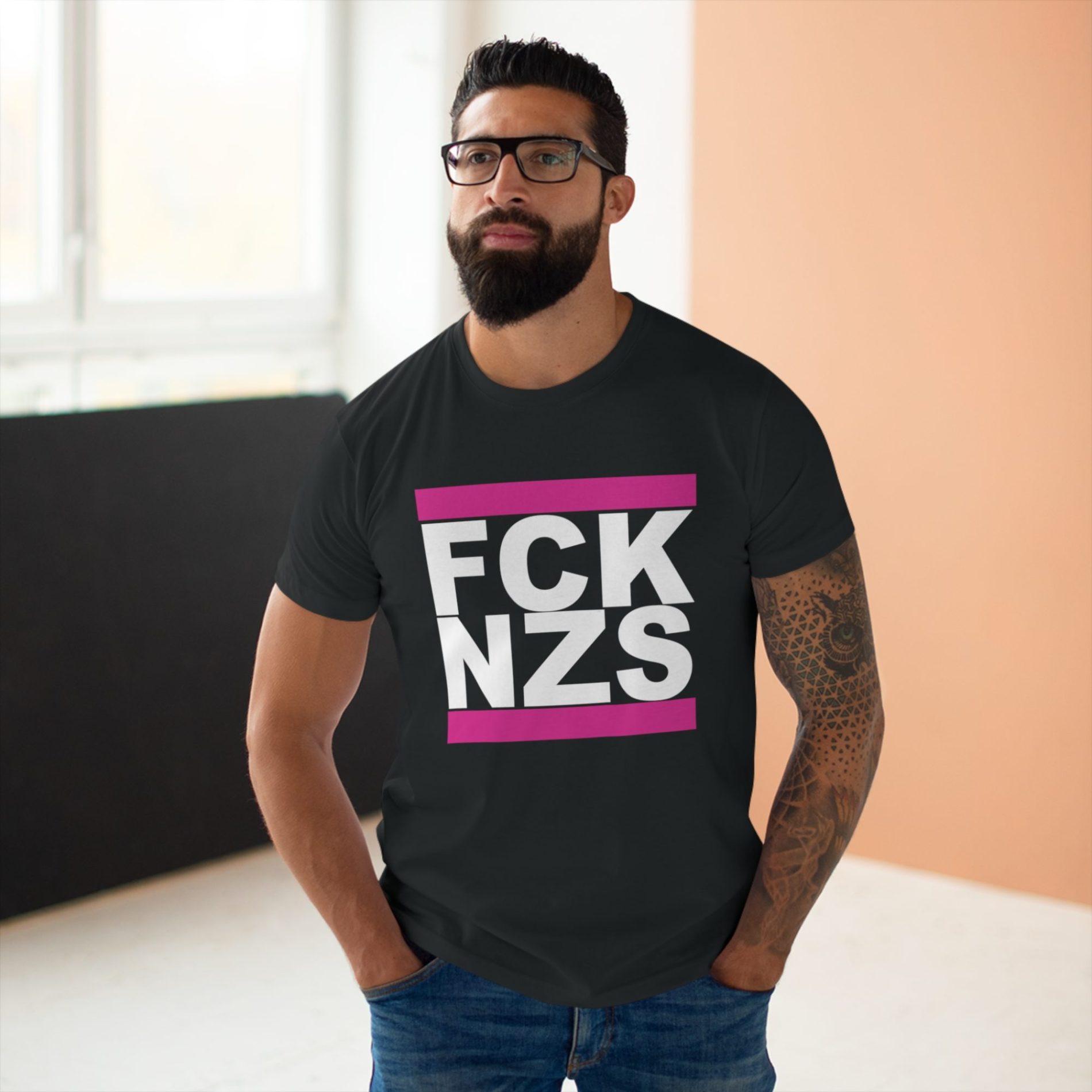 FCK NZS Pink pánské tričko spojuje ostrý antifašistický postoj s výraznou růžovou estetikou, která dává jasně najevo, že odpor může být stylový i nekompromisní zároveň. Tenhle design říká všechno nahlas a bez obalu – žádná tolerance pro nacisty, rasisty ani extremismus v jakékoliv podobě.