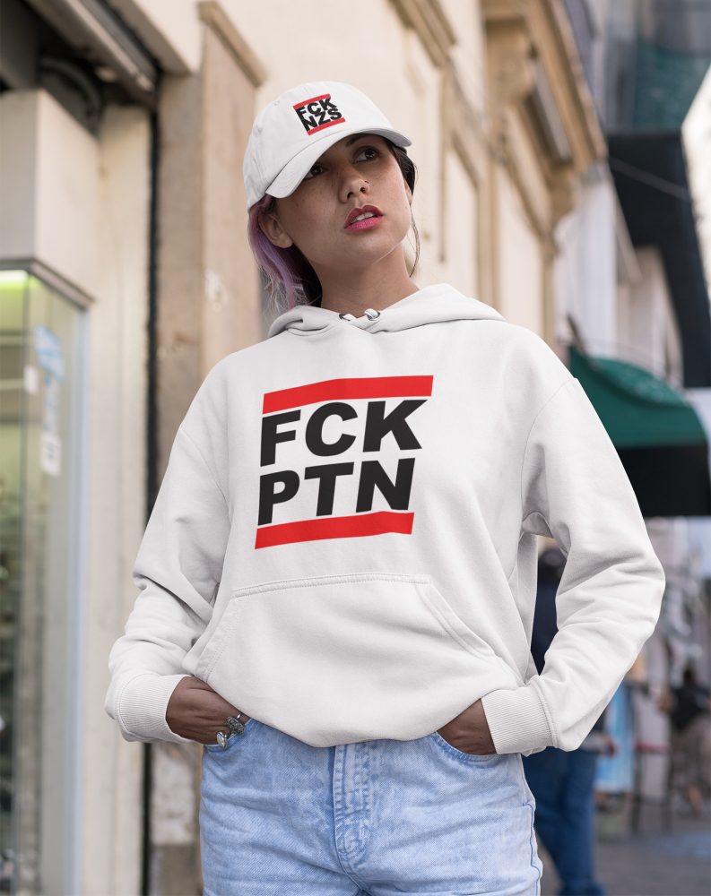 FCK PTN unisex mikina s kapucí je jasným a nekompromisním postojem proti imperialismu, válce a okupaci. Výrazný potisk FCK PTN dává nahlas vědět, že stojíš proti Putinovu režimu, autoritářství a agresi. Díky pohodlnému unisex střihu, kapuci se stahovacími šňůrkami a praktické klokaní kapse je tahle mikina ideální na demonstrace, protesty i každodenní nošení.