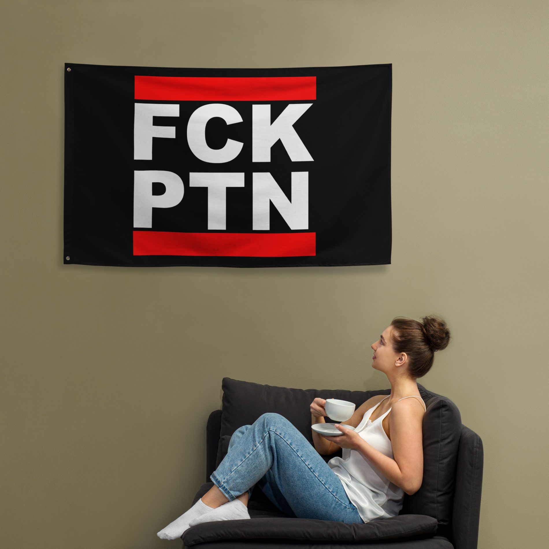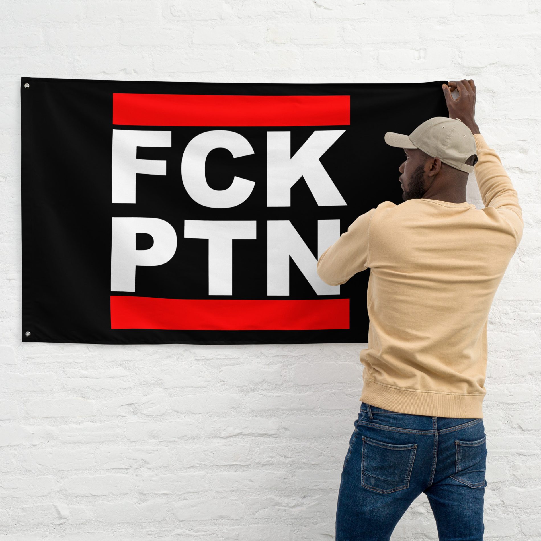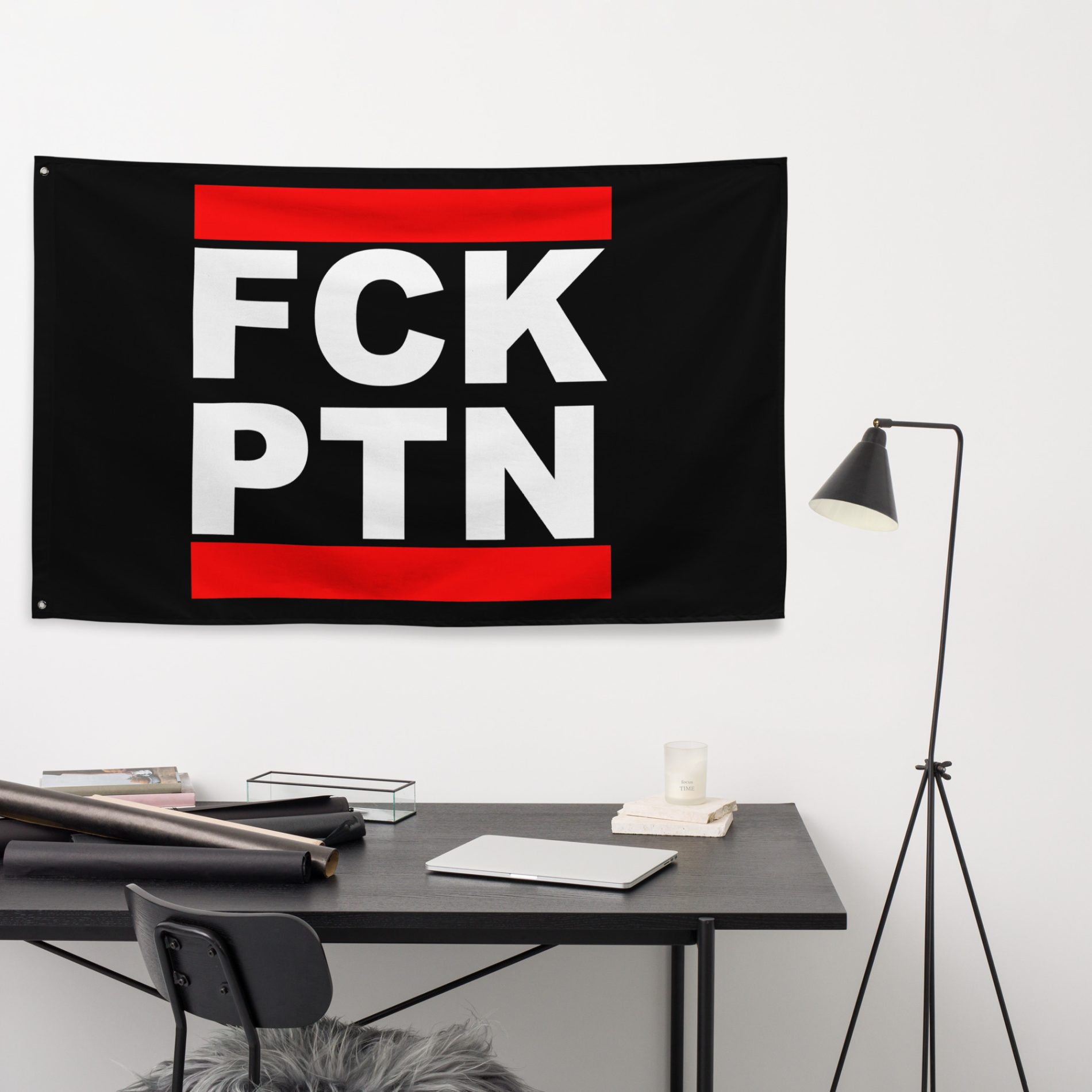 FCK PTN vlajka je přímý politický statement proti Putinovu režimu, imperialismu a autoritářství. Krátký nápis je čitelný z dálky a funguje jako jasný signál odmítnutí propagandy, represí a státního násilí. Je to vlajka pro lidi, kteří nehodlají mlčet a kteří stojí proti diktatuře a proti válce vedené z pozice moci.