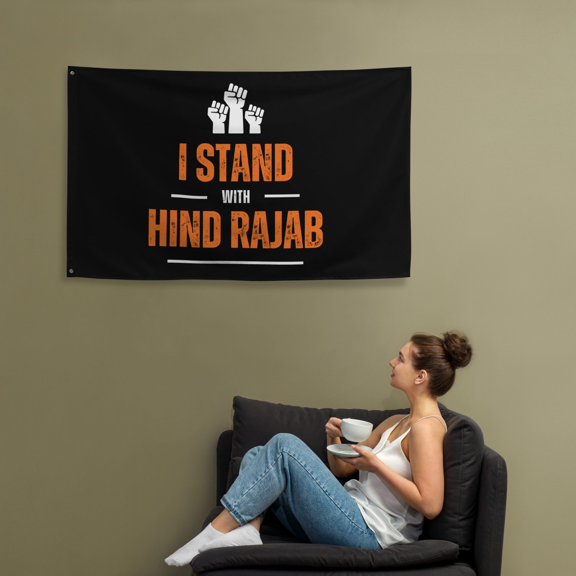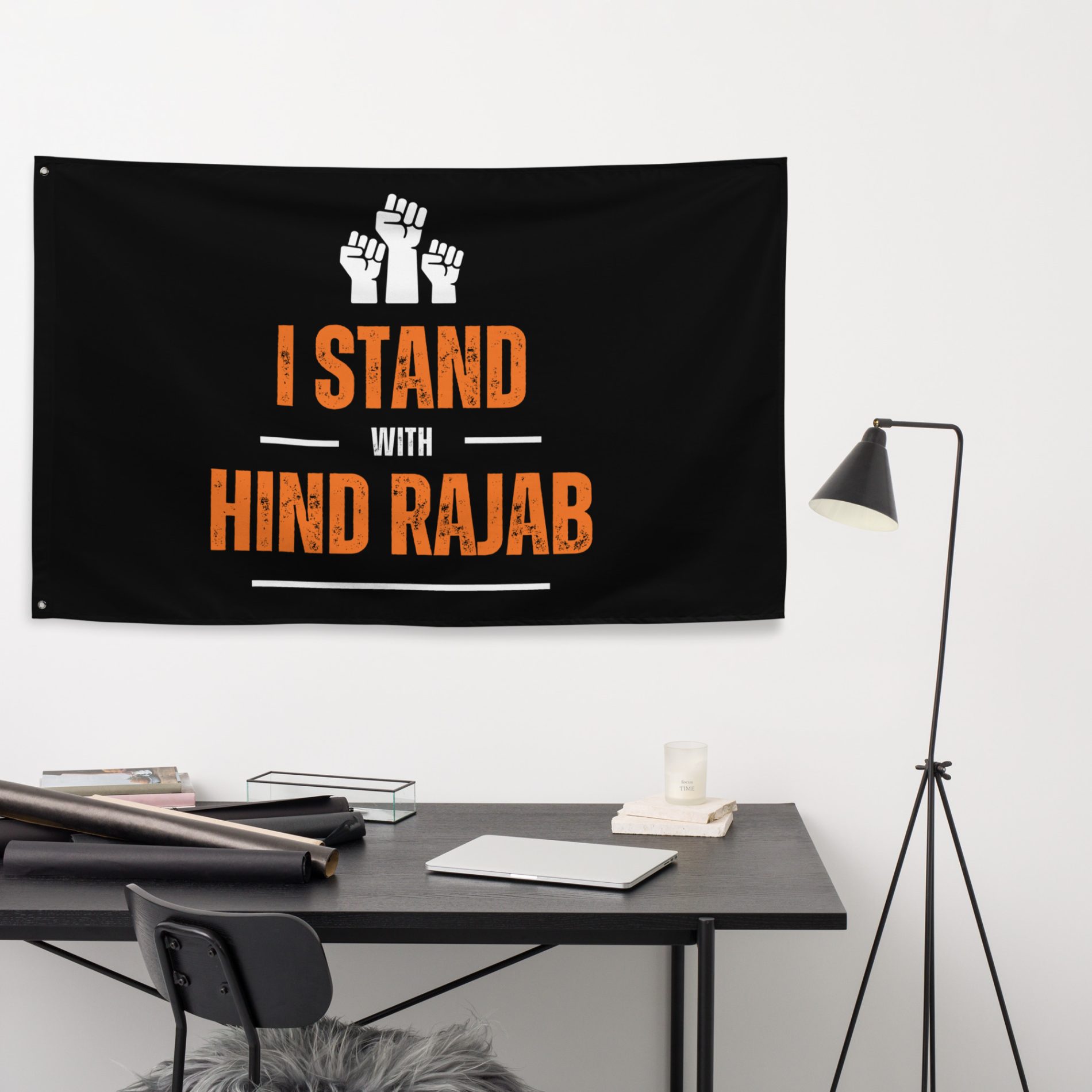 I Stand with Hind Rajab vlajka je jasný symbol solidarity s Hind Rajab a s palestinskými dětmi, které jsou terčem okupace a státního násilí. Je to vlajka paměti a odmítnutí ticha - říká nahlas, že na oběti nezapomínáme a že odmítáme normalizovat masakry civilistů. Konec okupace. Konec apartheidu. Konec blokády. Konec genocidy.
