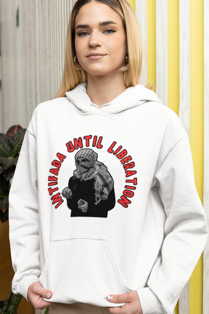 Unisex mikina s kapucí Intifada Until Liberation přináší jasné poselství odporu a solidarity s Palestinou. Design vzdává hold neústupnému boji za svobodu a připomíná, že spravedlnost si žádá odvahu – i v každodenním nošení.