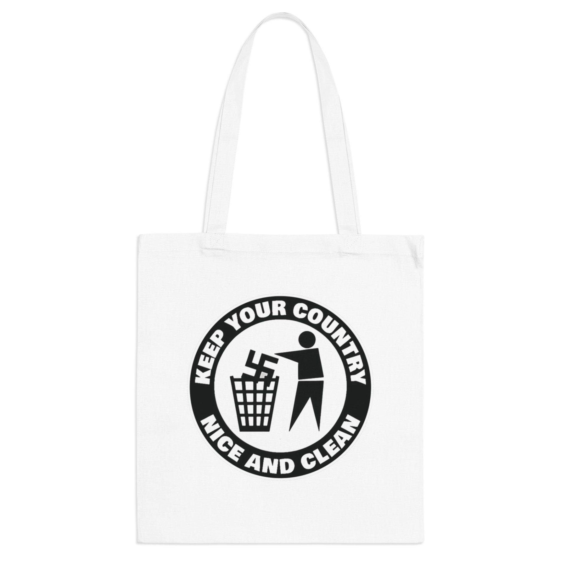 Keep Your Country Nice and Clean taška je praktická a stylová volba pro každodenní použití. Design s ikonickou grafikou ukazuje, že nacismus nemá v normální společnosti místo. Pevný a odolný materiál zajistí dlouhou životnost, ať už ji používáte na nákupy, do práce nebo na volný čas.