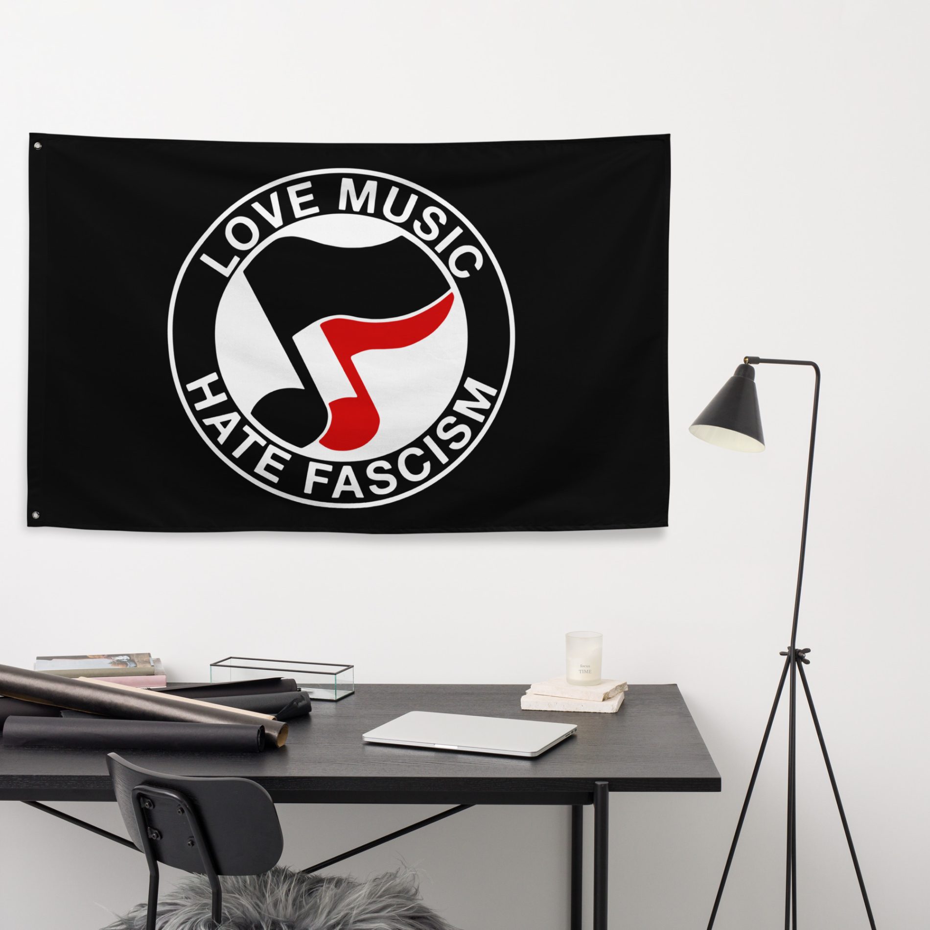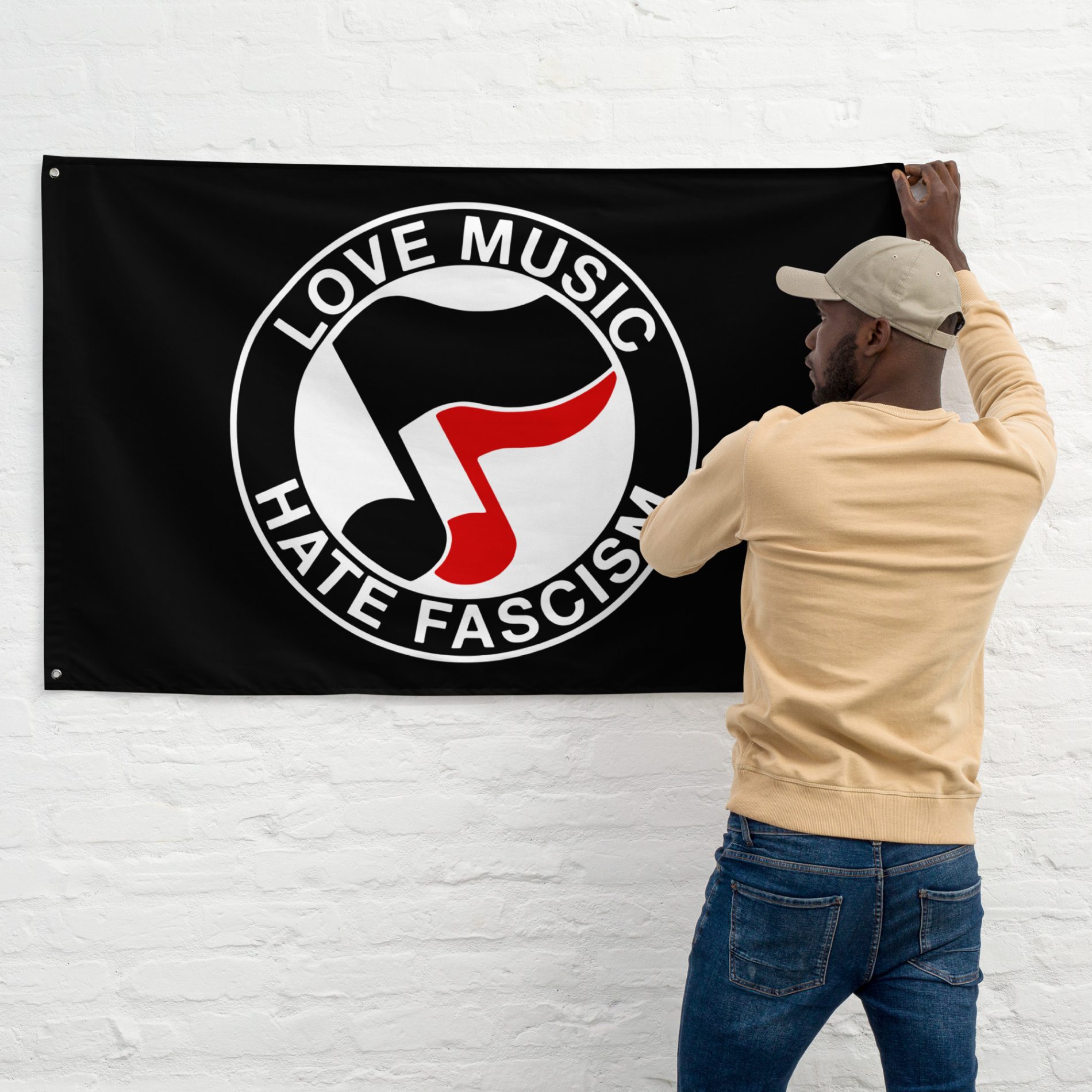 Love Music Hate Fascism vlajka je jasný statement pro lidi, kteří stojí na straně hudby, svobody a solidarity - a proti fašismu, neonacismu a nenávisti. Tenhle design je klasika protestní kultury i koncertních davů: jednoduchý vzkaz, který říká, že scéna patří lidem, ne fašistům. Žádná normalizace, žádný prostor pro nácky.