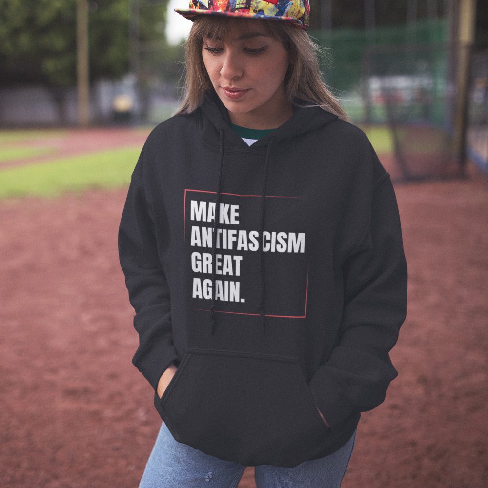 Make Antifascism Great Again dámská mikina vrací do hry to, co by nikdy nemělo zmizet – antifašismus. Design inspirovaný ikonickým sloganem převrací pravicovou rétoriku naruby a posílá jasný vzkaz: fašismus není názor, je to hrozba, proti které se stojí hrdě. Tahle mikina je ideální pro všechny, kdo nosí odpor na rukávu – doslova.