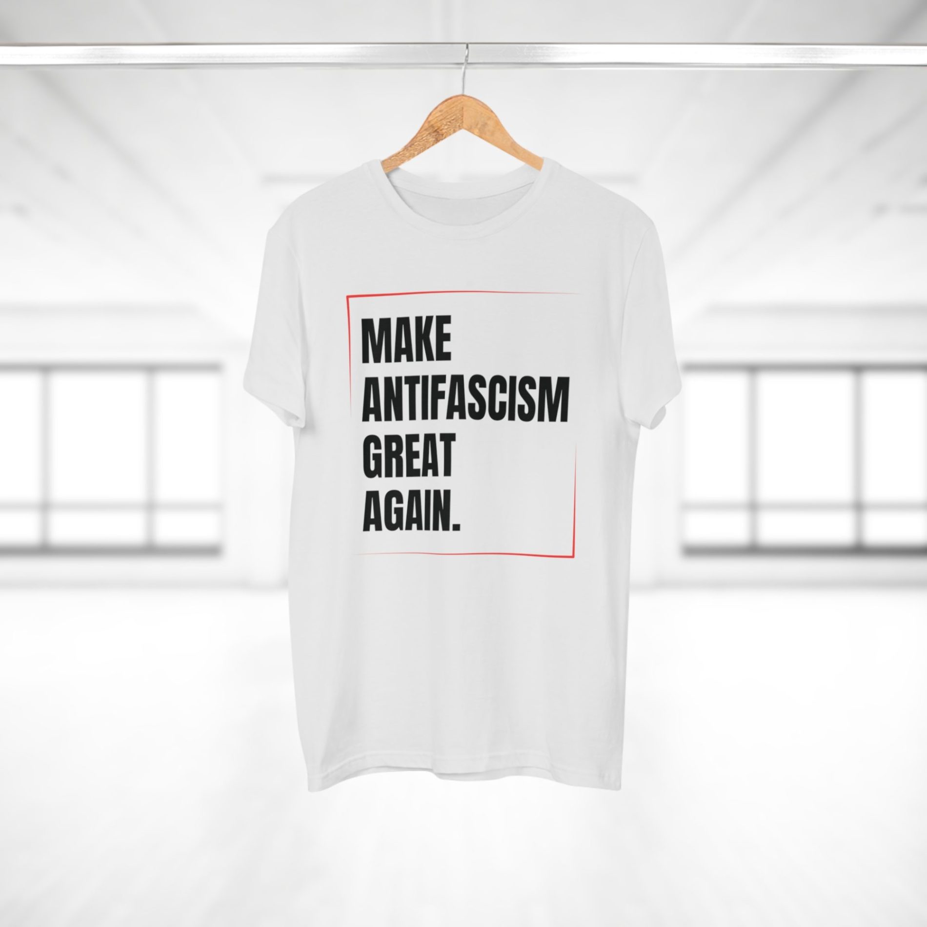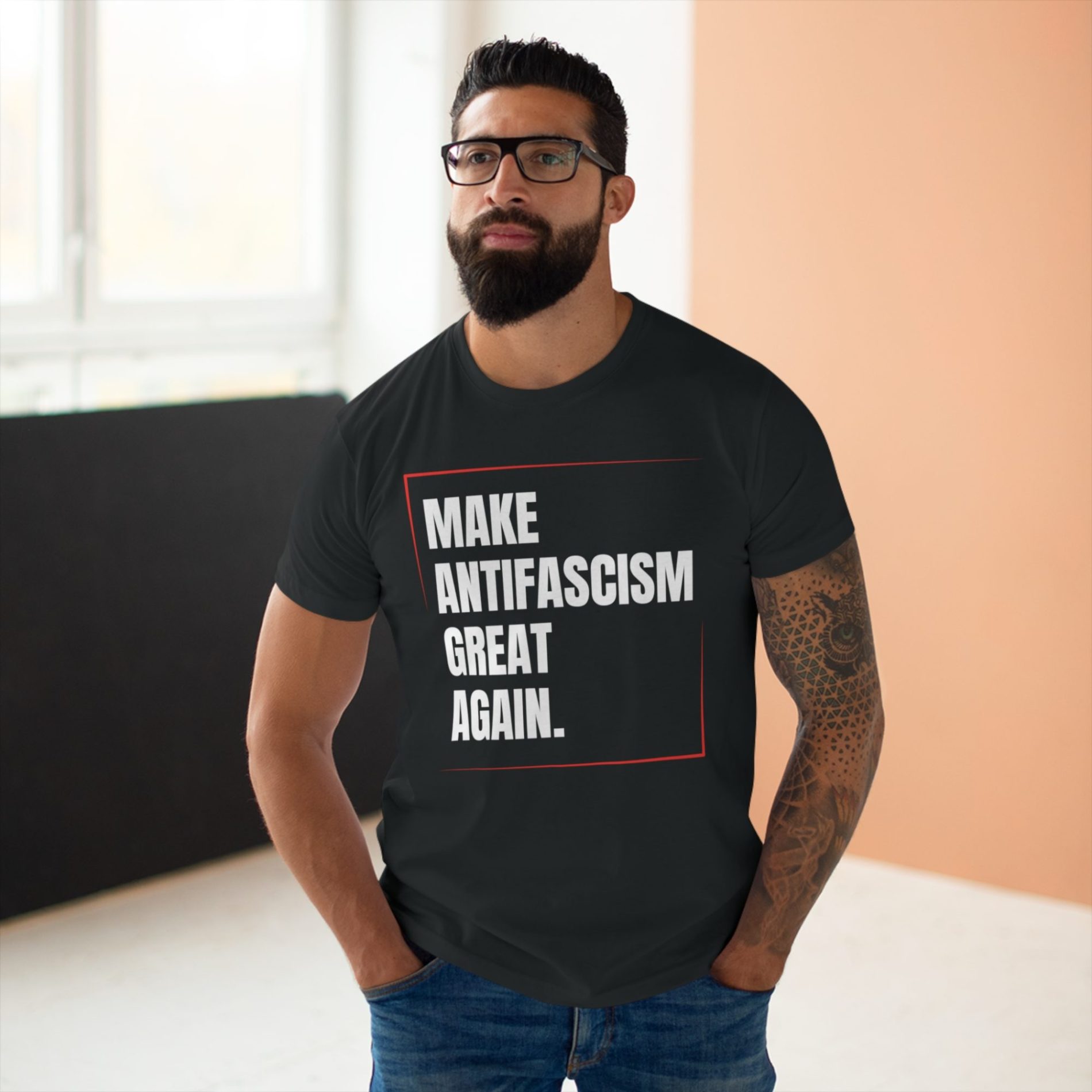 Make Antifascism Great Again pánské tričko je ironický, sebevědomý a jasný statement pro každého, kdo odmítá normalizaci nenávisti, autoritářství a ultrapravicových ideologií. Design převrací známý politický slogan a vrací pozornost tam, kde má být – k antifašismu jako základní občanské odpovědnosti. To z něj dělá silný kousek pro demonstrace, koncerty, komunitní akce i běžné nošení.