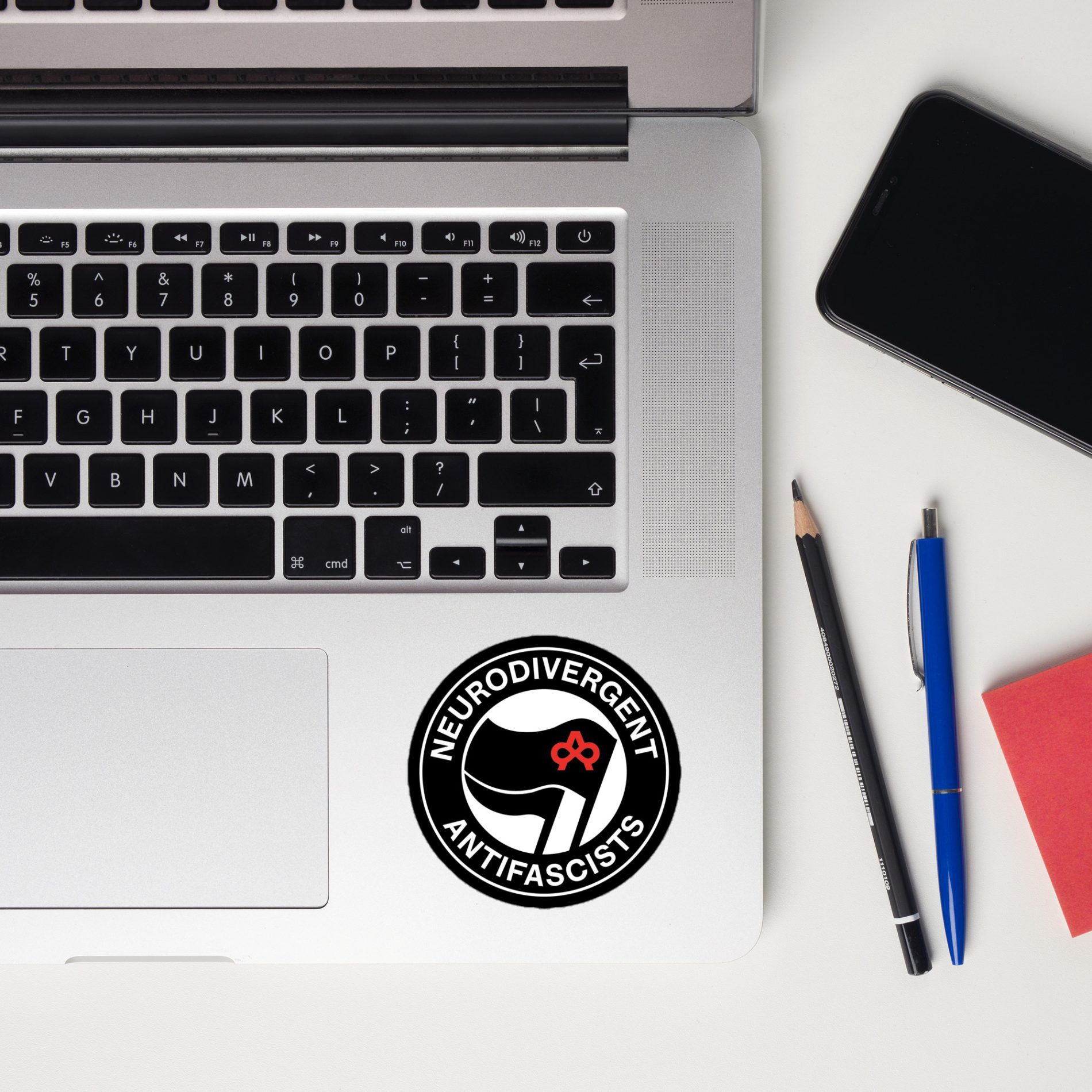 Kiss cut samolepky Neurodivergent Antifascists jsou určeny pro všechny, kdo chtějí jasně vyjádřit spojení mezi neurodiverzitou a antifašismem. Vzkaz, že autismus, ADHD, OCD nebo jiná forma odlišného vnímání světa nejsou slabinou, ale součástí odporu proti útlaku, diskriminaci a autoritářství.