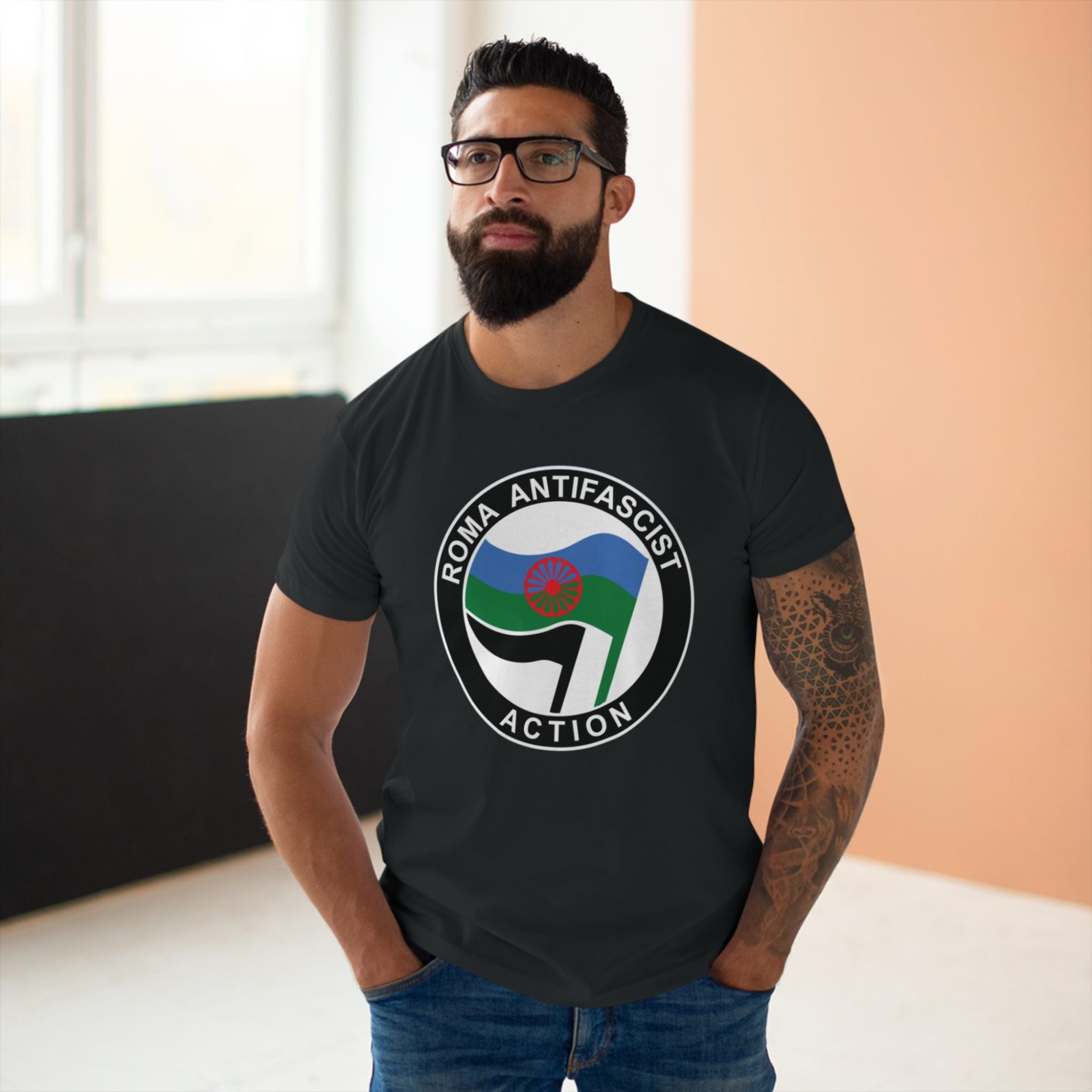 Roma Antifascist Action pánské tričko je silný symbol romského odporu proti fašismu, rasismu a útlaku. Spojuje hrdost, historii a aktivismus – protože Romové stáli proti fašismu už během druhé světové války a stojí proti němu dodnes. Tenhle design říká jasně: žádná tolerance pro nenávist, žádný prostor pro extremismus.