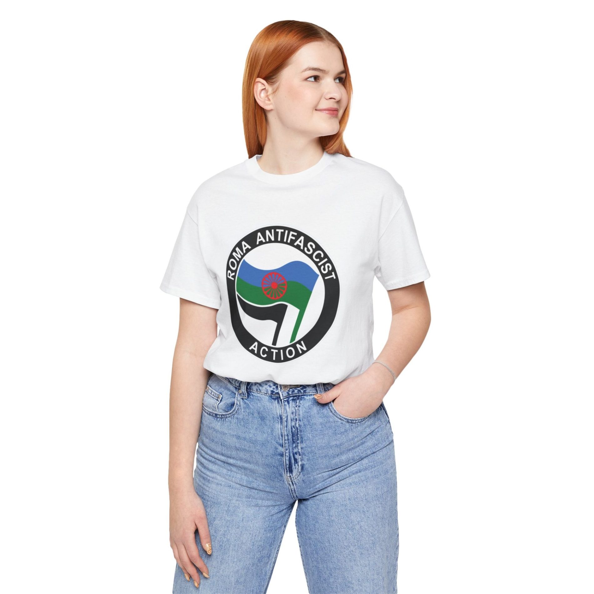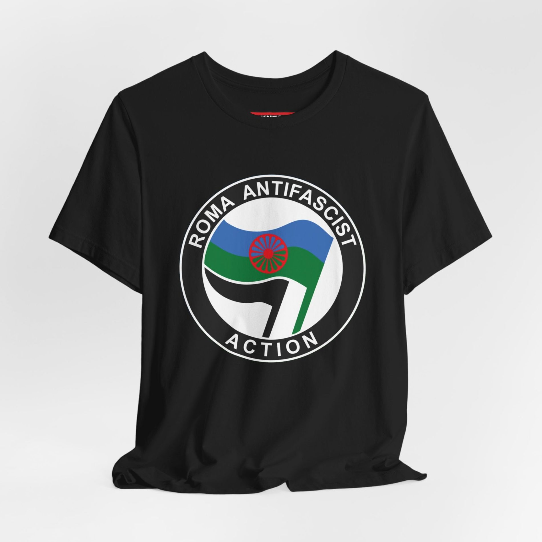 Roma Antifascist Action unisex tričko je jasný statement romské hrdosti. Tenhle motiv spojuje identitu a politickou praxi – proti rasismu, proti fašismu a všem formám útlaku. Je to kousek, který dává najevo solidaritu s romskou komunitou a připomíná, že Romové nejsou terč, ale síla – a že odpor je kolektivní.
