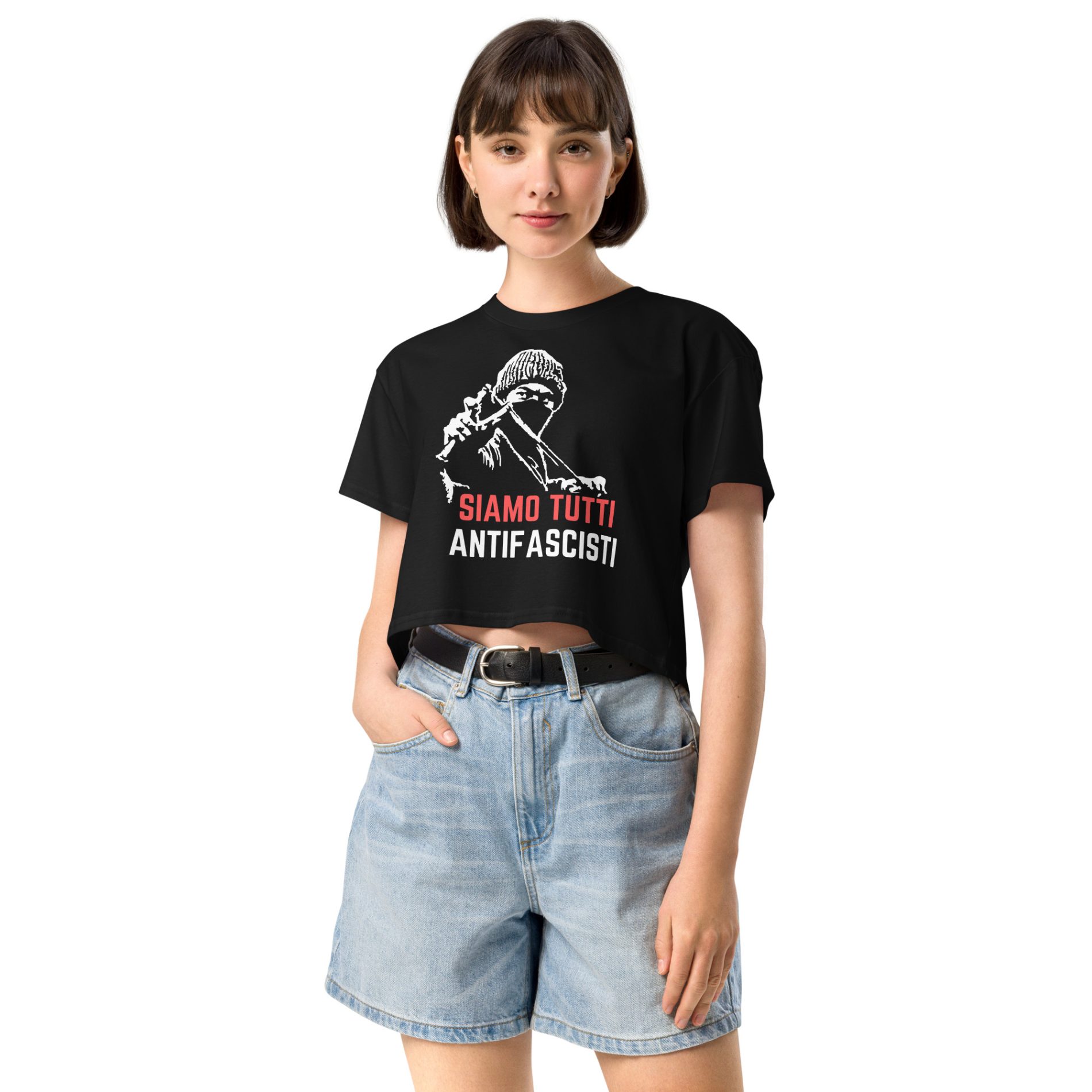 Siamo Tutti Antifascisti crop top nese ikonický slogan italského hnutí odporu – „Všichni jsme antifašisté“. Tenhle design je připomínkou, že antifašismus nemá hranice, jazyk ani uniformu – je to princip, který spojuje lidi napříč světem v boji za svobodu, důstojnost a lidská práva. Ideální pro každého, kdo se hlásí k mezinárodní solidaritě a odmítá jakoukoli podobu fašismu.