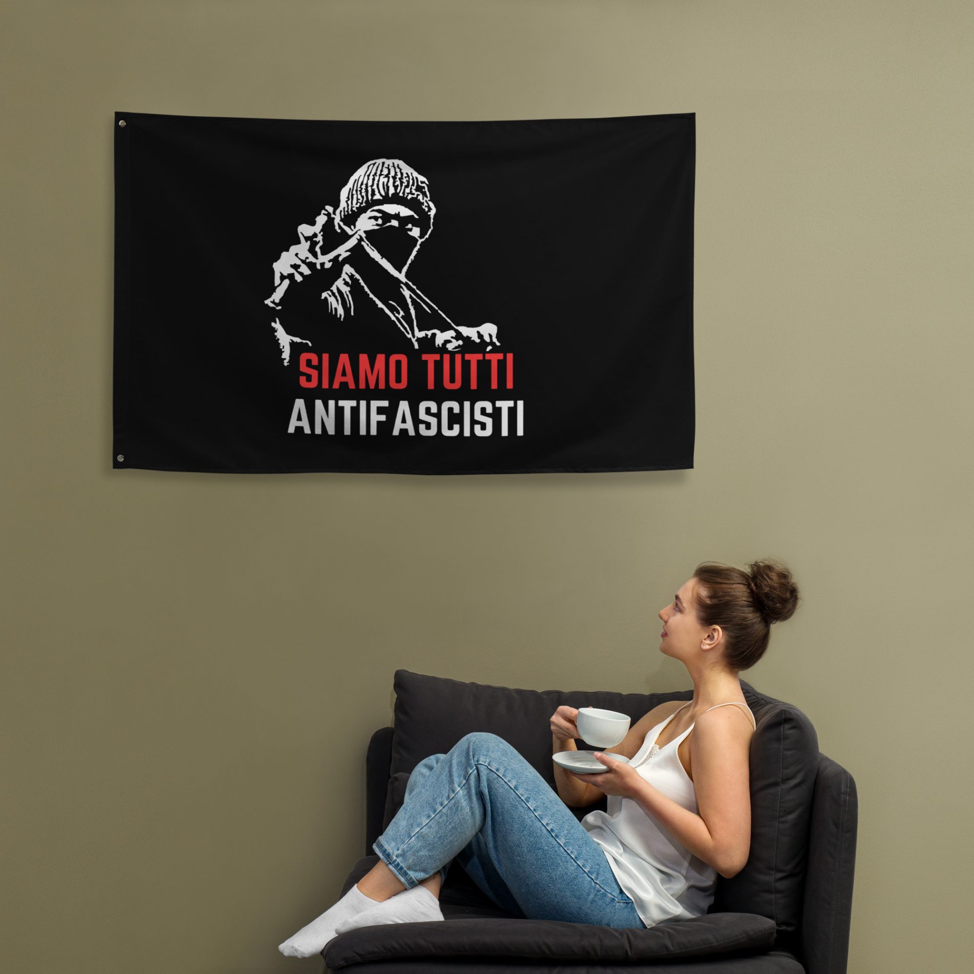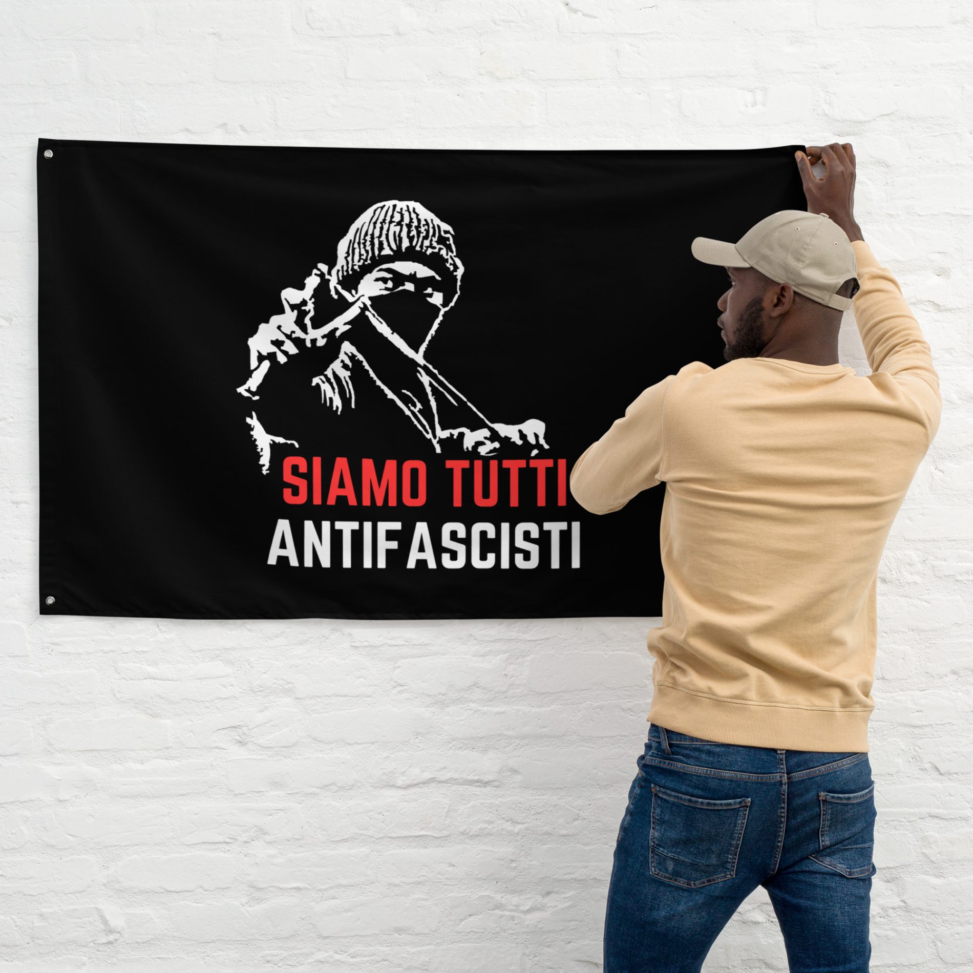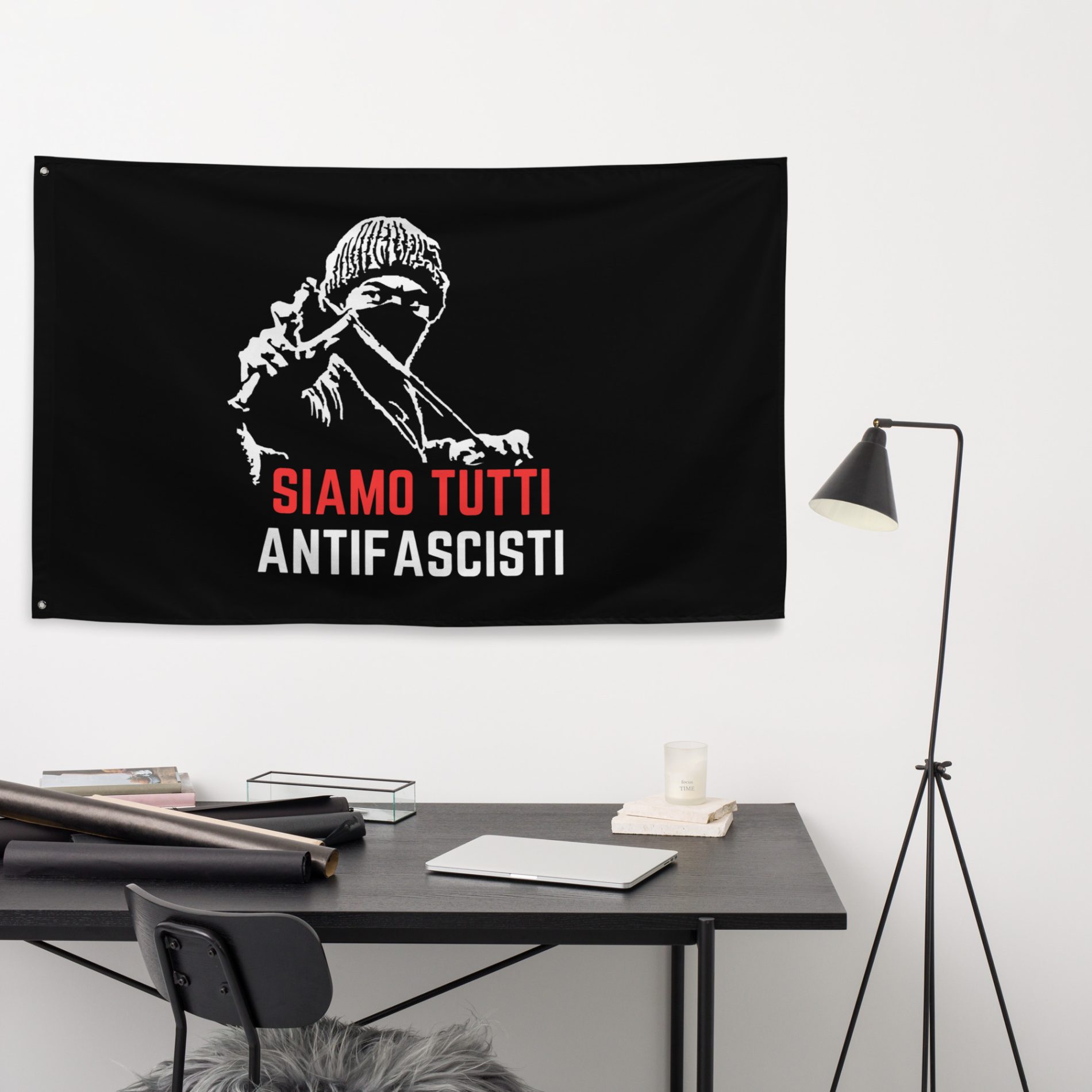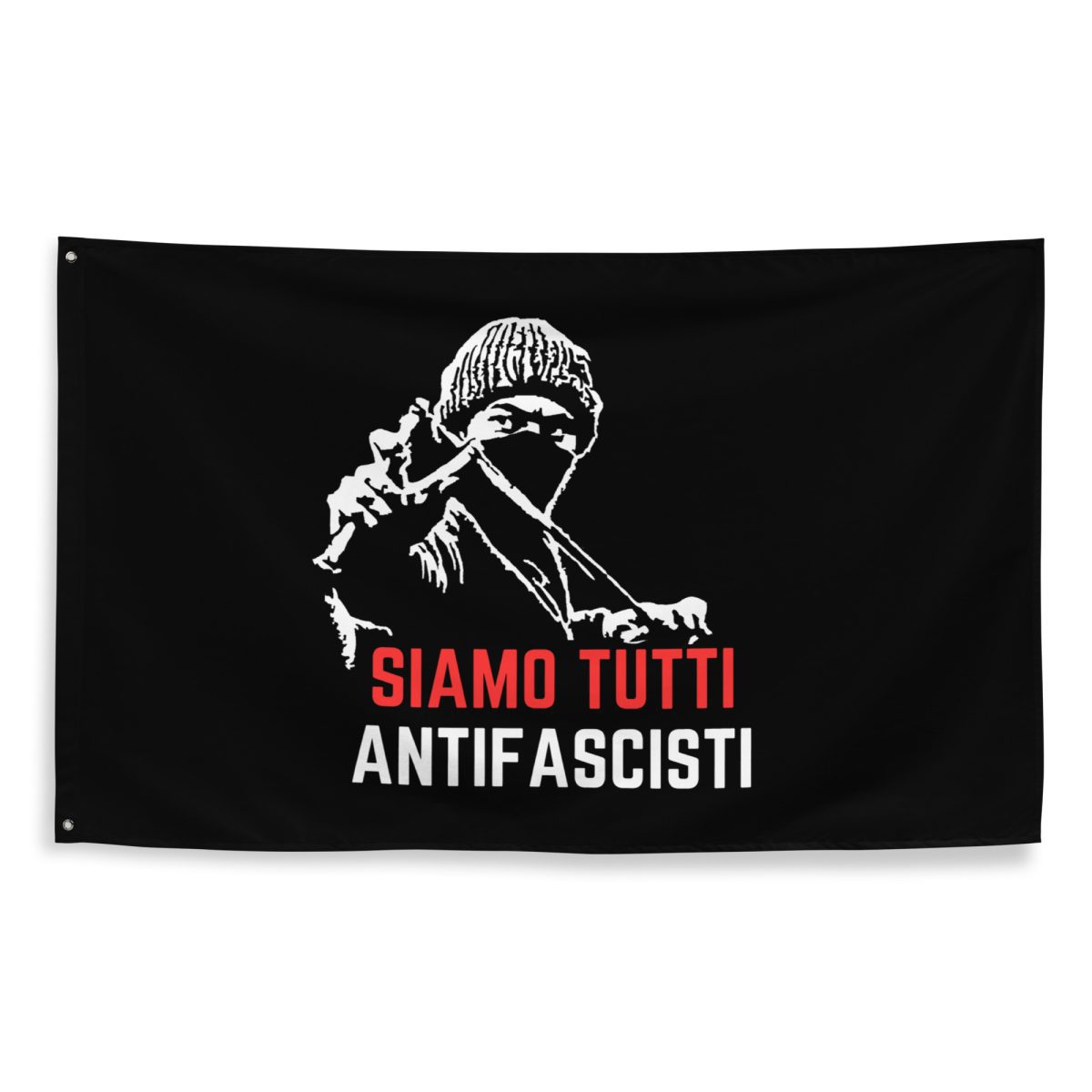 Siamo Tutti Antifascisti vlajka je jasný antifašistických statement v italštině - “Jsme všichni antifašisté”. Krátká věta, která říká přesně to, co má: solidarita napříč hranicemi, žádná normalizace fašismu, žádný prostor pro nácky.