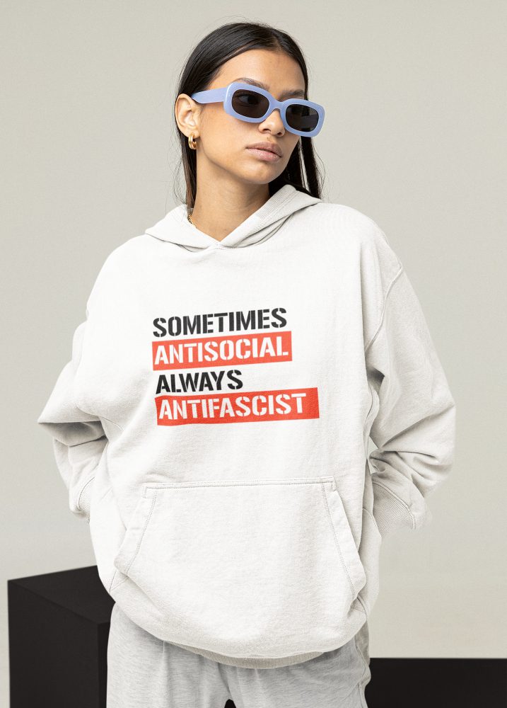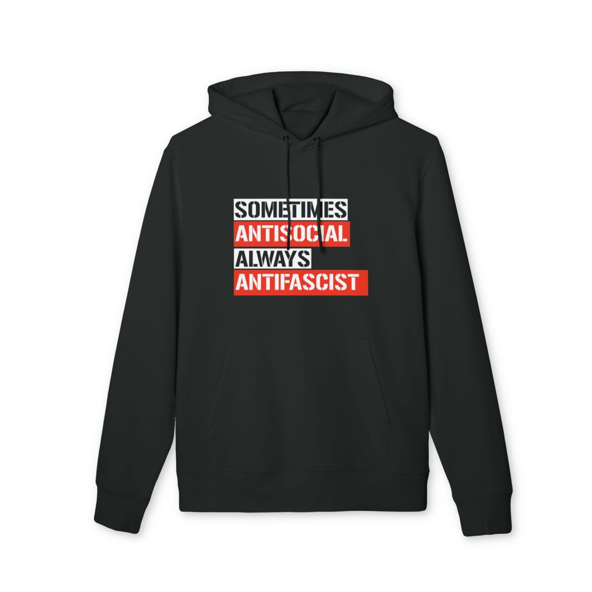 Sometimes Antisocial Always Antifascist organická mikina s kapucí
