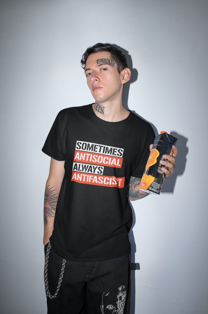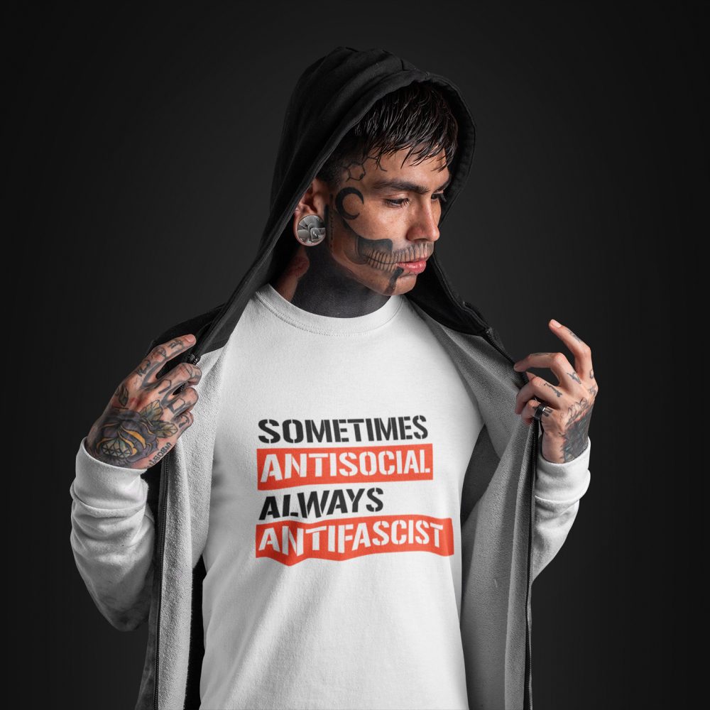 Sometimes Antisocial Always Antifascist design říká nahlas to, co si mnoho z nás myslí: i když si držíš odstup od společnosti, ticho a neutralita nejsou volba. Antifašismus je základní morální minimum.